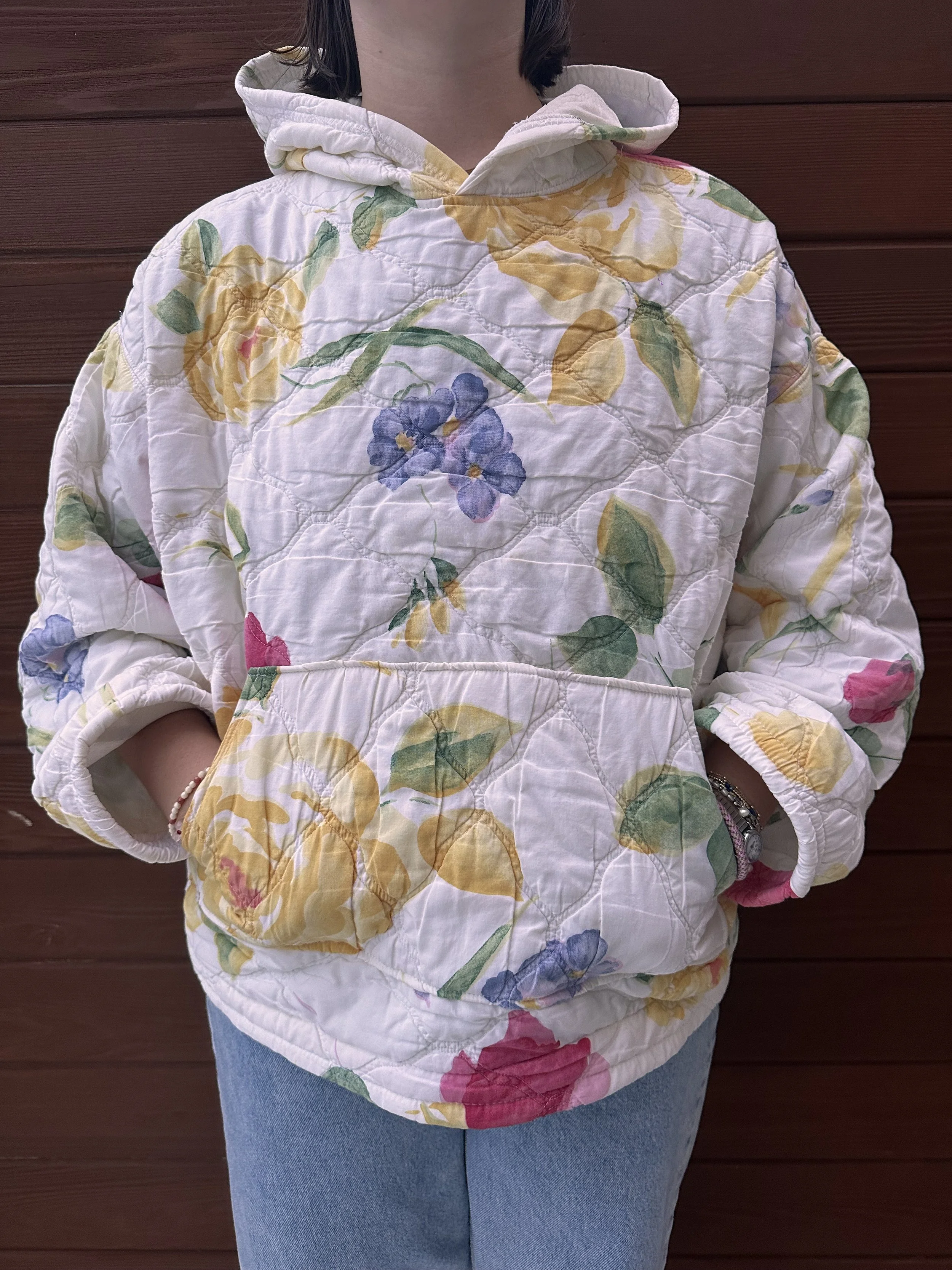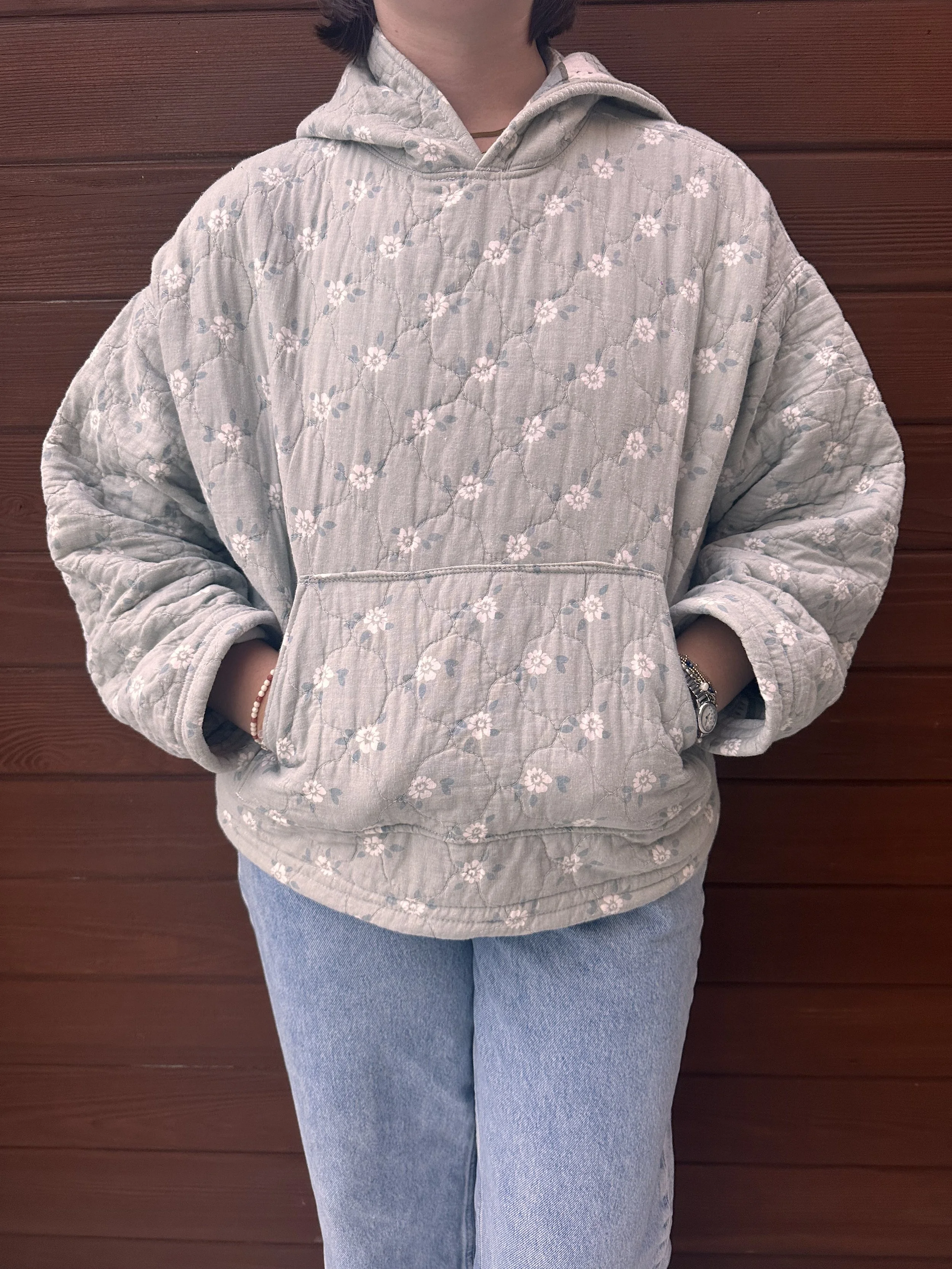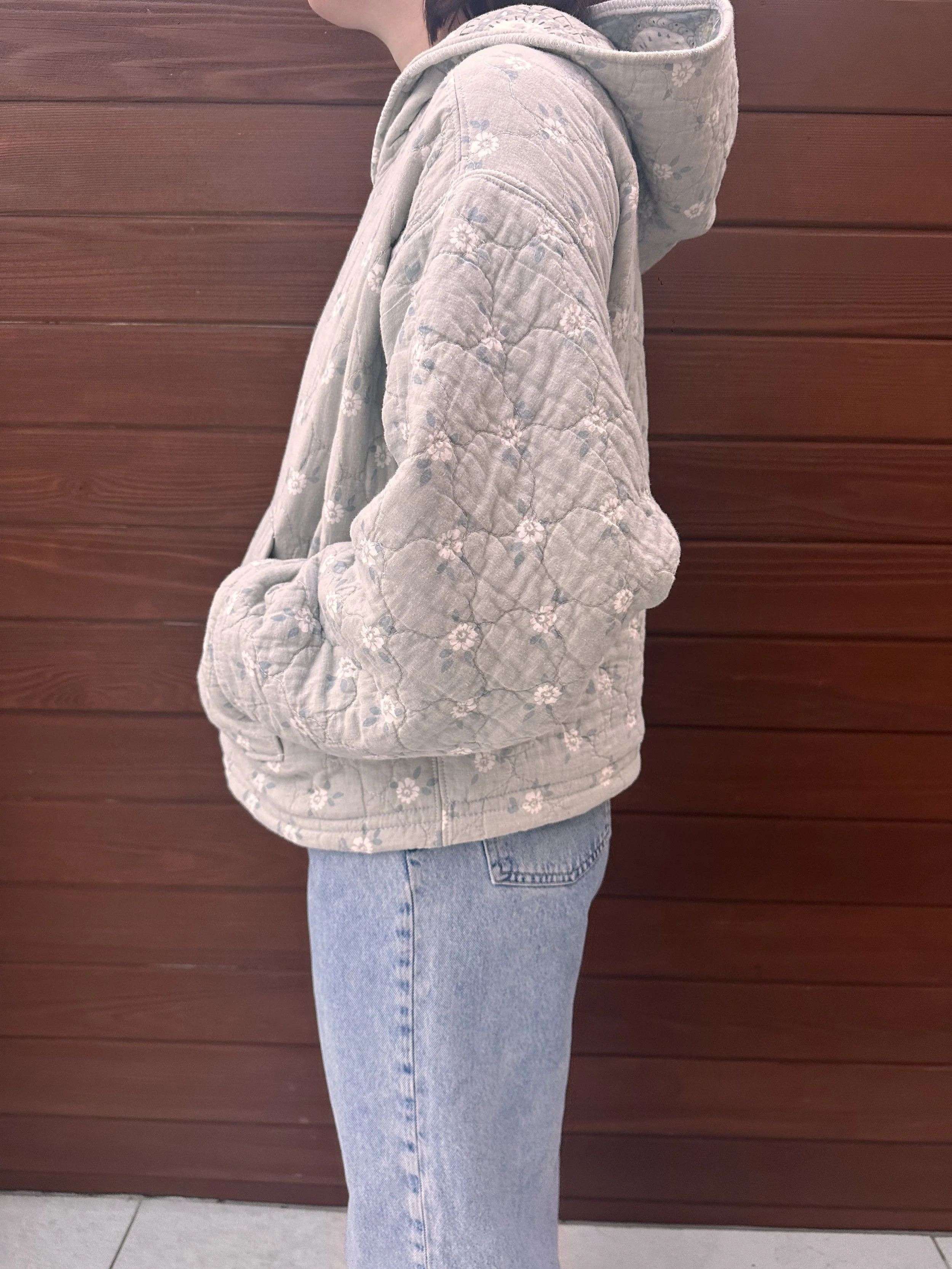 Two Toned Quilted Hoodie Blue Quilted Jacket Sold out Colorful Floral Quilted Hoodie Sold out Pink and Green Quilted Hoodie Sold out Green Flower Quilted Hoodie Sold out
